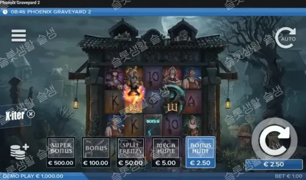 엑스아이터(X-iter)의 2.5배(Bonus Hunt) 기능을 켜두어 보너스 진입을 유도하거나, 자본이 허락한다면 모든 피처 로우가 뚫린 채로 시작하는 500배의 '슈퍼 보너스'를 과감하게 찔러 25,000배의 부활을 직접 목격해 보시길 권장합니다.