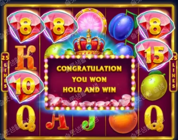 기본적인 과일 슬롯 구조에 프라그마틱 플레이나 플라아이스 등에서 흔히 볼 수 있는 '홀드 앤 윈(Hold and Win)' 보너스를 결합한 전형적인 미디엄 변동성 게임입니다. 베이스 게임의 난이도는 낮지만 그만큼 보상 상한선도 제한적으로 설정되어 있습니다.
