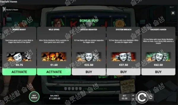 베이스 게임의 피로도를 피하고 20,000배 한방을 노리신다면, 스티키 와일드 확률을 높여주는 3.2배 와일드 스핀 모드를 활용하거나, 자본이 허락한다면 125배의 레벨 3 보너스(Hacker's Haven)를 직접 타격해 최고 등급의 해킹 쾌감을 즐겨보시길 권장합니다.