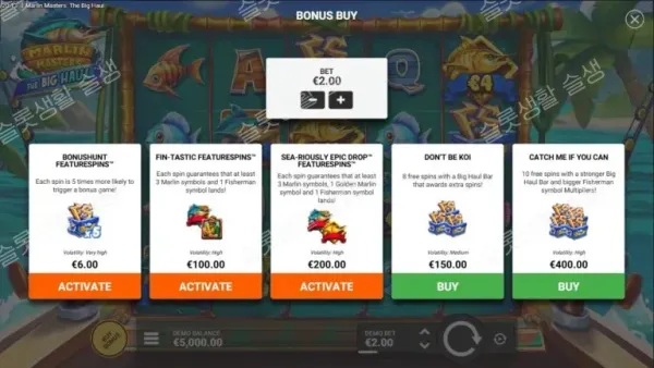 | Fin-tastic FeatureSpins | 50x | 3개 이상의 마린 + 1명의 피셔맨 확정 |