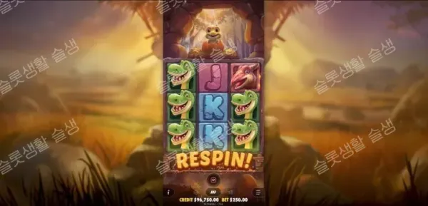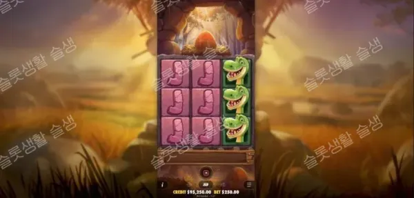 베이스 게임 중 하나 또는 두 개의 릴 전체에 초록색 공룡 와일드가 가득 차면(수직 스택), 해당 릴들은 그 자리에 고정(Locked)됩니다.