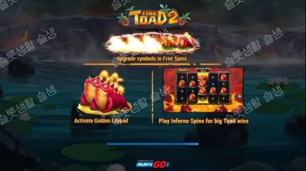 파이어 토드 2는 전작의 밋밋했던 부분을 '황금 수련잎(분할)'과 '인페르노 스핀'이라는 강력한 기능으로 채워 넣은 성공적인 후속작입니다. 특히 프리 스핀 시 최고 배당 심볼로만 시작할 수 있는 선택권을 준 점이 인상적입니다.