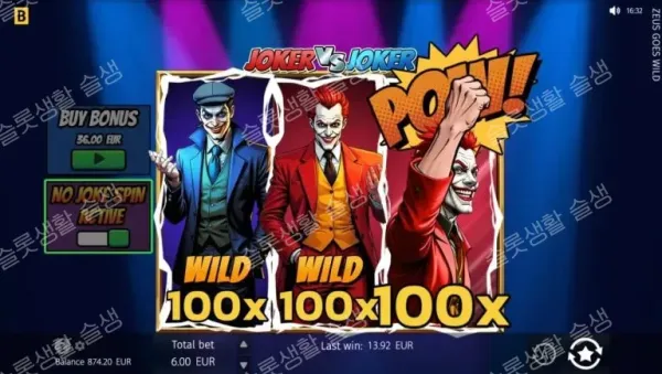 가장 중요한 점은 환수율이 95.50%로 평균 이하라 베이스 게임 파밍의 효율이 떨어진다는 것입니다. 대신 60배의 보너스 구매 비용이 매우 합리적으로 책정되어 있습니다. 프리 스핀 5회 동안 100배짜리 대결에서 한두 번만 승리해도 훌륭한 흑자를 기대할 수 있으므로, 60배 구매나 10배짜리 '노 조커 스핀(No Joke Spins)'을 활용해 속전속결로 승부를 보는 것이 이 게임의 핵심 공략법입니다.