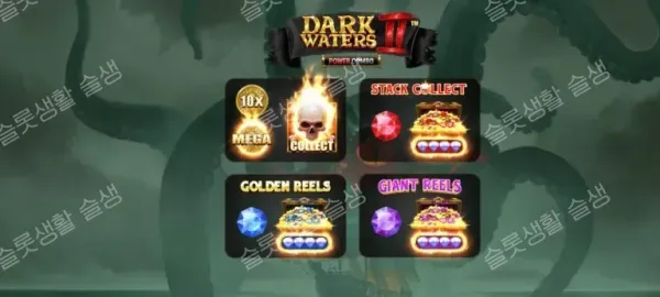다크 워터스 2 파워 콤보는 기존의 세 가지 수집통(3-Pot) 시스템에 RPG 같은 레벨업(Progression) 요소를 가미하여 게임성을 한층 심화시켰습니다. 레벨 4가 된 상태에서 파워 콤보가 터지면 수백만 개의 페이라인과 쏟아지는 수집 기호로 엄청난 잭팟을 목격할 수 있습니다.