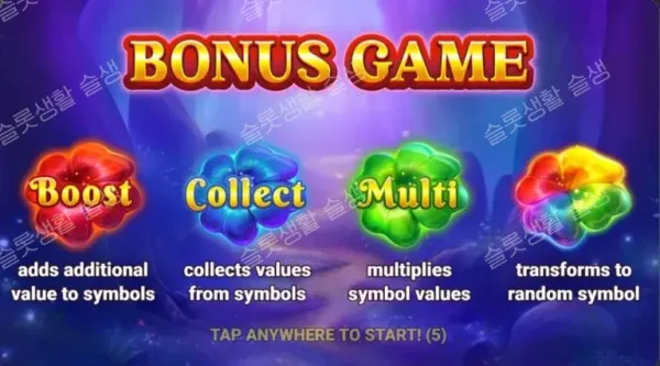보너스 라운드는 두 가지 방식으로 트리거됩니다. 그리드에 6개 이상의 보너스 심볼(동전)이 랜딩되거나, 빨간색/파란색/초록색 클로버가 상단의 냄비에 수집될 때 무작위 확률로 홀드 앤 윈(Hold & Win) 보너스 게임에 진입합니다.