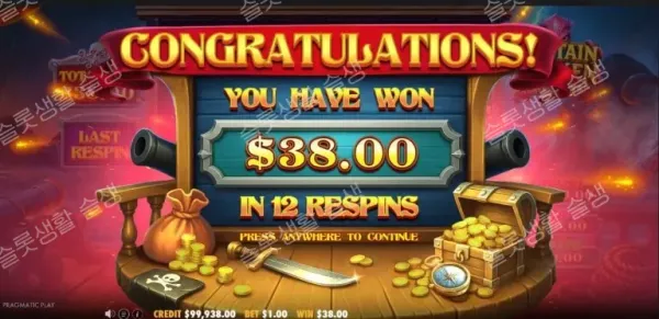 | Special | 해적선(와일드), 머니 심볼(금화), 콜렉트(수집), 리스핀 심볼 | - |