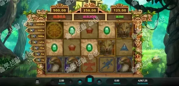 이 게임의 가장 직관적인 당첨 방식입니다. 페이라인과 관계없이 스핀 한 번에 화면에 등장한 부족 마스크의 개수에 따라 고정된 상금을 지급합니다. 9개의 마스크가 동시에 랜딩되면 베팅액의 3,000배를 즉시 획득합니다.