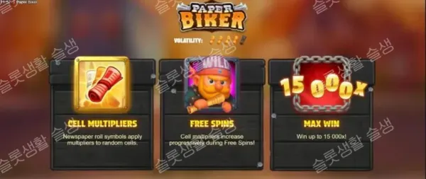 핵쏘 게이밍(Hacksaw Gaming)의 파트너사인 불샤크 게임즈(Bullshark Games)가 자전거를 탄 전직 폭주족 신문 배달원 테마의 페이퍼 바이커를 출시했습니다. 6x6 그리드 기반의 클러스터 페이(Cluster Pays) 슬롯으로, 신문 뭉치를 던져 셀 멀티플라이어를 생성하는 독특한 기믹과 프리 스핀 중 영구적으로 고정되는 배수 시스템을 통해 최대 15,000배의 당첨금을 제공하는 고변동성 게임입니다.