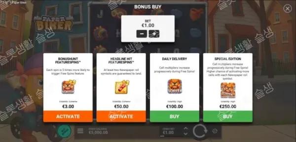 - 5스캐터 진입 (Special Edition): 12회의 프리 스핀이 주어지며, 신문 뭉치가 더 많은 칸을 활성화할 확률이 대폭 상승합니다.