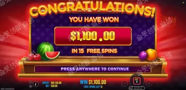 이 게임의 외형은 단순한 과일 머신이지만, 내부는 '빅 베스' 시리즈의 진화형 엔진입니다. 듀얼 콜렉터 시스템 특성상 파란색과 빨간색 와일드가 분산되어 랜딩될 경우 레벨업 템포가 오히려 늦어질 수 있는 리스크가 있습니다. 따라서 100배의 일반 구매보다는, 요구 수집량을 4개에서 3개로 단축시켜 레벨업 효율을 극대화하는 300배 슈퍼 프리 스핀(Super Free Spins)을 구매하는 것이 5,000배 맥스윈 도달에 구조적으로 훨씬 유리합니다.