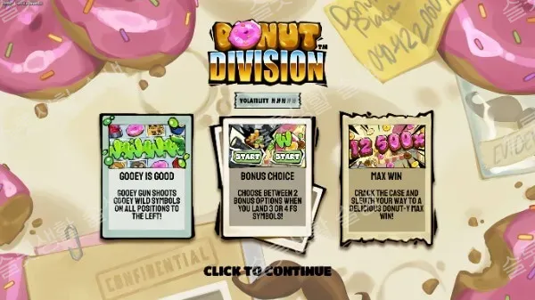 2024년 12월, 핵소 게이밍(Hacksaw Gaming)이 형사와 도넛이라는 고전적인 클리셰를 유쾌하게 비튼 신작 도넛 디비전(Donut Division)을 출시했습니다. 올드 스쿨 카툰 스타일의 그래픽과 함께, 와일드 심볼을 발사하는 '구이 건(Gooey Guns)' 기능, 그리고 플레이어의 취향대로 선택 가능한 보너스 라운드를 통해 최대 12,500배의 달콤한 승리를 선사합니다.