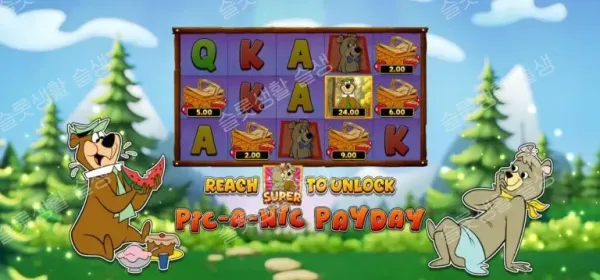 - 파트 2 (Pic-A-Nic Payday): 파트 1에서 달성한 멀티플라이어를 들고 홀드 앤 윈 형태의 미니 게임으로 돌입합니다. 오직 캐시/콜렉트 기호만 등장하며, 그리드 15칸을 모두 채우면 100배의 추가 잭팟을 얻습니다.