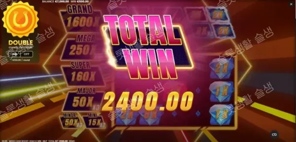 - 캐시 부스터: 1x~10x로 시작하는 캐시 상금의 기본값을 높이거나, 무작위로 2배(x2) 또는 3배(x3)의 멀티플라이어를 곱해줍니다.