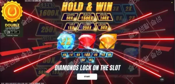 플레이어 편의를 위해 게임 최초 실행 시 '스타팅 부스터(Starting Boosters)'가 발동하여 일부 상금 가치를 미리 높여주며, '레드 다이아몬드' 하나를 무조건 릴에 고정시켜줍니다. 스핀 중 랜딩된 레드 다이아몬드는 보너스 라운드가 발동할 때까지 그 자리에 영구적으로 남아 보너스 진입 확률과 수집량을 높여줍니다.