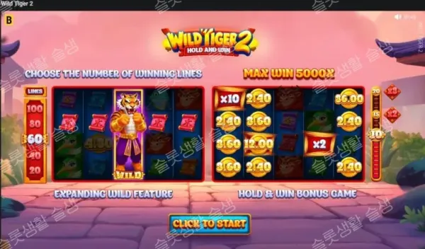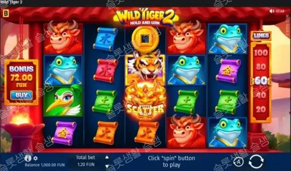 | Special | 호랑이(확장 와일드), 황금 호랑이(스캐터/100x), 동전(보너스 기호) | - |