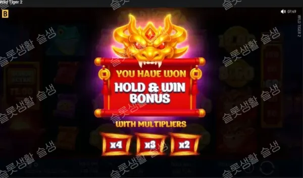 중앙에 위치한 2, 3, 4번 릴에만 등장하는 호랑이 심볼은 와일드 역할을 수행합니다. 당첨 가능성이 있는 위치에 랜딩되면 즉시 해당 릴의 4칸을 모두 덮는 거대한 와일드로 상하 확장되어 다수의 페이라인 당첨을 동시에 이끌어냅니다.
