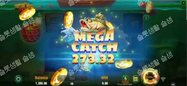 그리드에 0.5x에서 최대 2,000x에 이르는 현금 가치가 적힌 '캐시 심볼'이 떨어집니다. 이 기호들은 단독으로는 획득할 수 없으며, 같은 스핀 내에 어부(Fisherman) 와일드 기호가 등장해야만 화면 상의 모든 캐시 상금을 수집하여 한 번에 지급합니다.