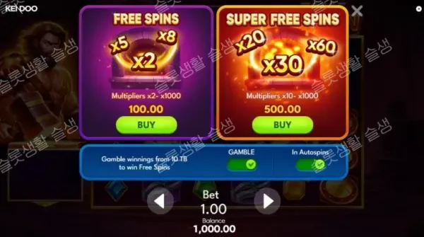3. 슈퍼 보너스 선택지: 500배의 고비용이지만, 최상위 배수를 노릴 수 있는 슈퍼 프리 스핀 구매 옵션 제공.