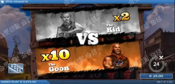 ELK 스튜디오(ELK Studios)가 서부 개척 시대의 무법천지 마을을 배경으로 한 하드보일드 슬롯 데드아이를 출시했습니다. 6x4 그리드에서 펼쳐지는 30개의 페이라인을 기반으로 하며, 다섯 명의 라이벌 총잡이들이 서로를 제거하며 와일드와 멀티플라이어를 생성하는 혁신적인 '듀얼(Duel)' 메커니즘이 핵심입니다. 최대 10,000배의 당첨금을 제공하는 고변동성 게임입니다.