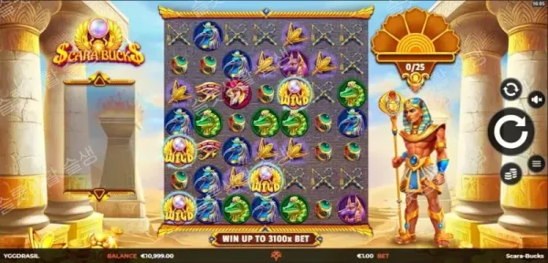위그드라실(Yggdrasil Gaming)이 고대 이집트 신화와 파라오의 보물을 테마로 한 스카라 벅스를 출시했습니다. 7x7 그리드에서 가로세로 5개 이상 인접 시 당첨되는 클러스터 페이(Cluster Pays) 방식을 사용하며, 연쇄 소거를 통해 '골든 로터스(Golden Lotus)' 미터기를 충전하여 거대한 3x3 와일드를 소환하는 짜릿한 시스템을 갖추고 있습니다. 최대 3,100배의 당첨금을 제공하는 고변동성 슬롯입니다.