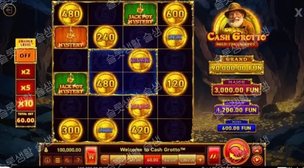 베이스 게임을 돌리다 보면 붉은색의 '캐시 인피니티(5x~15x)' 코인이나 '스티킹 투 인피니티' 미스터리 기호가 떨어질 수 있습니다. 이 기호들은 한 번 등장하면 '홀드 더 잭팟' 보너스 게임이 발동될 때까지 영구적으로 그 자리에 고정(Sticky)됩니다. 특히 중앙 릴에 고정될 경우 보너스 게임 진입 확률을 크게 높여줍니다. (※ 베팅 금액이나 찬스 레벨을 변경하면 화면에서 일시적으로 사라지며, 원래 조건으로 돌아오면 다시 나타납니다.)
