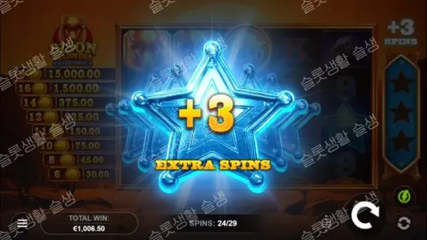 베이스 게임에서는 배수가 없는 일반 와일드(x1)만 등장하지만, 프리 스핀 라운드에 진입하면 x2 및 x3 멀티플라이어 와일드가 등장하기 시작합니다. 이 와일드들이 1,024 웨이즈의 당첨 라인에 포함되면 전체 당첨금이 배수로 증폭되며, 프라이즈타워 메커니즘 또한 그대로 활성화되어 있어 연타의 기회를 제공합니다.