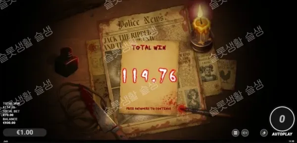 1. 클래식 스티키 와일드의 정수: 와일드가 영구 고정되며 후반부 잠재력을 끌어올리는 슬롯 머신의 가장 고전적이고 확실한 쾌감. 2. 뛰어난 테마 몰입감: 안개 낀 런던 거리와 기괴한 사운드 디자인이 잭 더 리퍼라는 소재와 완벽하게 어우러짐. 3. 우수한 구매 가성비: 스티키 와일드 메커니즘을 70배라는 매우 저렴하고 합리적인 비용으로 즐길 수 있음. |