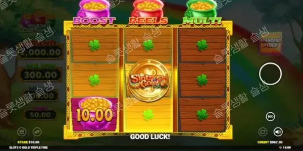 블루프린트 게이밍(Blueprint Gaming)이 아일랜드 레프리콘 신화를 바탕으로 한 3x3 클래식 슬롯 슬롯츠 오 골드 트리플 파이어를 출시했습니다. 전통적인 5개의 페이라인 구조를 가지고 있으나, 릴 상단의 세 가지 팟(보라색, 빨간색, 녹색)이 폭발하며 보너스를 업그레이드하는 '트리플 파이어(Triple Fire)' 기능으로 현대적인 변주를 가했습니다. 복잡한 프리 스핀 대신 직관적인 수집(Collect)과 홀드 앤 윈(Hold and Win) 리스핀에 집중했으며, 베팅액을 5배 높이는 '파워 플레이(Power Play)' 모드를 통해 최대 10,000배의 당첨금을 제공하는 고변동성 게임입니다.