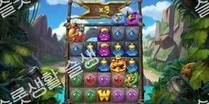 울창한 정글 속 해변을 배경으로 보물 상자와 화려한 앵무새들이 등장합니다. 기본적으로 5x5 그리드에서 시작하며, 5개 이상의 동일한 심볼이 가로/세로로 연결되면 승리하는 클러스터 페이(Cluster Pays) 방식을 따릅니다. 승리한 심볼은 제거되고, 빈 공간에 새로운 심볼이나 와일드가 떨어지는 드롭 방식이 적용됩니다.