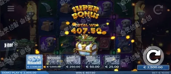 | King Spin | 25x | 스키블링 비(Rain) 또는 보너스 비가 1회 보장되며, 보너스 당첨 시 '슈퍼 보너스'로 업그레이드됩니다. |
