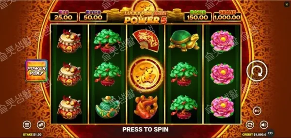 전략적 주의사항: RTP가 95.00%로 낮기 때문에 베이스 게임을 하염없이 돌리는 것은 위험합니다. 5 페이라인의 한계로 일반 심볼 당첨을 기대하기보다는, 시드머니를 효율적으로 분배하여 파워 플레이(5x)를 짧게 켜고 끄며 즉각적인 현금 수집과 보너스 트리거를 노리는 전략이 유리할 수 있습니다.
