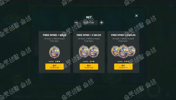 | Tier 3 프리 스핀 | 390x | 프리 스핀 라운드에 진입하며, 매 스핀마다 최소 3개의 와일드(8x 승수 보장)가 확정 보장되는 최상위 보너스입니다. |