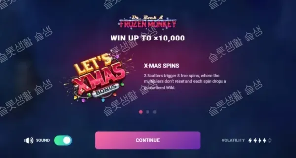 트루랩(TrueLab)이 자사의 록(Rock) 음악 테마 슬롯의 후속작으로, 크리스마스 분위기와 꽁꽁 언 원숭이 조수를 더한 닥터 락 앤 프로즌 몽키를 출시했습니다. 5x3 그리드와 243 웨이즈(Ways to win) 구조를 채택한 이 게임은, 당첨된 기호가 파괴되는 캐스케이딩(Cascading) 시스템과 각 릴의 승수가 서로 곱해지는(Multiplicative) 강력한 배수 엔진을 결합했습니다. 프리 스핀 라운드에서는 이 승수가 초기화되지 않고 영구적으로 누적되어, 중간-높음(Mid-High) 변동성 환경에서 최대 10,000배의 당첨금을 만들어냅니다.