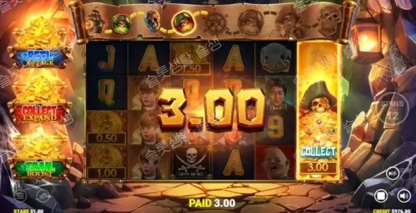 보물 상자(Chest) 모디파이어가 활성화되는 기본 프리 스핀입니다. 빨간 상자(수집 기호 4행 확장), 파란 상자(캐시/수집 기호만 등장), 초록 상자(트레일 승수 대폭 증가) 중 하나 이상의 효과를 받습니다. 라운드 중 수집 기호를 3개 모을 때마다 5회의 추가 스핀과 최대 10x까지 상승하는 글로벌 승수를 획득합니다.