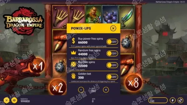 피터 앤 선즈(Peter & Sons)가 자사의 간판 프랜차이즈인 바르바로사(Barbarossa) 시리즈를 신비로운 아시아 제국 테마로 확장한 바르바로사 드래곤 엠파이어를 출시했습니다. 5x3 그리드와 243 웨이즈(Ways to win)를 기반으로, 연쇄 당첨(Cascade)이 일어날 때마다 승수가 2배씩 계속해서 증가하는 더블맥스(DoubleMax) 엔진의 핵심을 완벽히 계승했습니다. 와일드, 점프 볼 등 특수 대포알 기믹이 추가되었으며, 프리 스핀 중에는 배수가 초기화되지 않아 최대 40,000배의 경이로운 맥스윈을 달성할 수 있는 고변동성(High Volatility) 슬롯입니다.