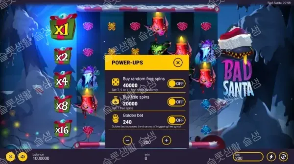 피터 앤 선즈(Peter & Sons)가 전통적인 크리스마스의 명랑함을 완전히 비틀어버린 고딕 호러 슬롯 배드 산타를 출시했습니다. 5x6 그리드 상에서 8개 이상의 기호가 나타나면 당첨되는 스캐터 페이(Scatter Pays) 시스템을 기반으로 하며, 캐스케이드(연쇄 폭발)가 발생할 때마다 글로벌 승수가 2배씩 폭등하는 강력한 엔진을 채택했습니다. 무작위 승수 점프(Multiplier Jump) 기능과 영구적으로 유지되는 프리 스핀 승수를 통해 최대 20,000배의 당첨금을 만들어내는 매력적인 고변동성(High Volatility) 슬롯입니다.