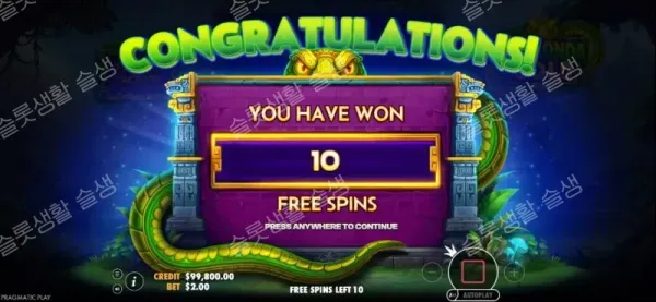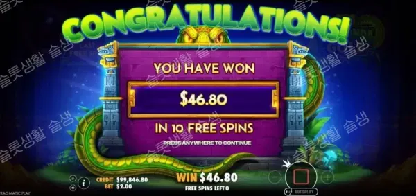 | Buy Free Spins | 100x | 100배의 비용을 지불하고 즉시 프리 스핀 라운드에 진입합니다. (※ 3~6개의 스캐터 중 무작위 개수로 트리거됨) |
