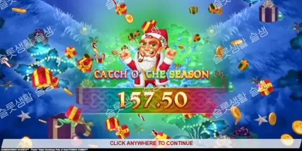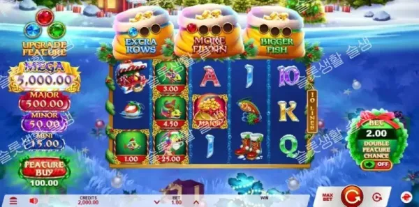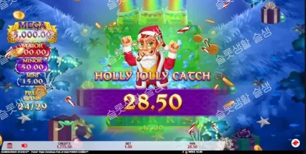 게임버거 스튜디오(Gameburger Studios)가 레프러콘 플린의 낚시 모험을 크리스마스 테마로 리스킨(Reskin)한 신작을 출시했습니다. 기존 복장 대신 산타 복장으로 갈아입은 플린과 함께, 화면에 등장하는 현금(Cash) 및 잭팟 기호를 낚아 올리는 수집(Collect) 메커니즘이 핵심인 게임입니다. 이 슬롯의 가장 큰 특징은 코인을 수집하여 3가지 고유한 피처 팟(Feature Pot)을 업그레이드하고, 이를 결합하여 프리 스핀 라운드를 폭발적으로 강화하는 파워 콤보(Power Combo™) 시스템입니다. 최대 5,000배의 잭팟을 포함한 다양한 기능으로 무장한 중간-높음(Medium-High) 변동성 슬롯입니다.