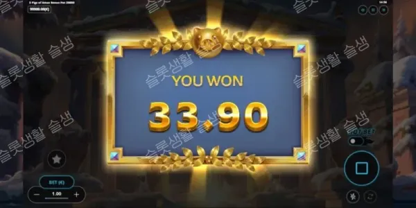 • 제우스 돼지: 프리 스핀 중 발생하는 모든 일반 당첨 및 수집 상금에 3배(x3) 승수를 적용합니다.