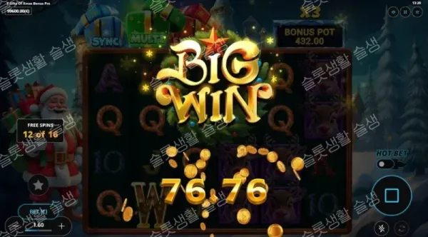 게이밍 코프스(Gaming Corps)가 크리스마스의 포근한 분위기와 산타클로스를 테마로 한 3 기프츠 오브 크리스마스를 출시했습니다. 6x4 그리드와 4,096 웨이즈(Ways to win)를 바탕으로, 즉석 상금(Instant Prize) 기호를 1번과 6번 릴의 수집(Collect) 기호로 낚아채는 메커니즘을 사용합니다. 세 가지 각기 다른 기능의 선물 기호가 모디파이어(스핀 추가, 승수, 릴 동기화)를 제공하며, 프리 스핀 종료 후 누적된 보너스 팟(Bonus Pot)을 통해 최대 10,000배의 당첨금을 제공하는 중간-높음(Medium-High) 변동성 슬롯입니다.