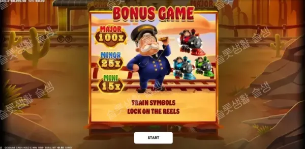 베이스 게임 중 4가지 종류(1단계, 2단계, 3단계 및 최상위 단계)의 기차 기호가 1개에서 5개까지 랜딩될 수 있습니다. 단일 스핀에서는 오직 한 종류의 기차 기호만 등장합니다. 기차가 랜딩되면 릴 상단에 위치한 3개의 상자 중 일치하는 상자를 향해 코인을 던집니다. 최상위 기차 기호는 3개의 상자에 모두 동시에 코인을 던집니다. 코인이 상자에 수집되는 과정은 오락적인 시각적 연출일 뿐이며, 실제 보너스 트리거 확률에는 영향을 미치지 않습니다.
