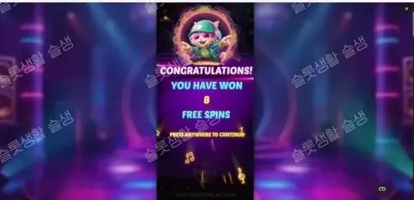 팻 판다(Fat Panda)가 고양이 DJ와 클럽 파티를 테마로 한 DJ 네코를 출시했습니다. 이 게임은 3-4-3 배열의 3릴 그리드와 10개의 고정 페이라인을 갖추고 있으며, 모바일 환경에 최적화된 인터페이스를 제공합니다. 베이스 게임과 프리 스핀 모두에서 무작위 현금 가치를 지닌 '머니 기호(Money Symbol)'가 등장하며, 5개 이상 누적 시 상금을 지급하는 메커니즘을 사용합니다. 무작위로 발동되는 프리 스핀 라운드를 통해 최대 5,000배의 당첨금을 달성할 수 있는 중간-높음(Medium-High) 변동성 슬롯입니다.