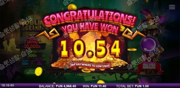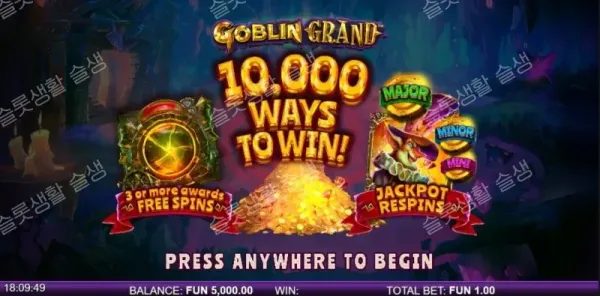 베이스 게임 및 프리 스핀 도중 고블린들이 무작위로 개입하여 예측 불가능한 혜택을 줍니다.