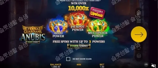 올 포 원 스튜디오(All For One Studios)가 고대 이집트 신화의 아누비스를 테마로 한 이터널 가디언스: 아누비스 파워 콤보를 출시했습니다. 이 게임은 5x4 그리드와 40개의 페이라인(프리 스핀 시 60개)을 기반으로 하며, 와일드, 잭팟, 승수의 3가지 고유한 능력을 수집하고 결합하는 '파워 콤보(Power Combo)' 엔진을 핵심으로 합니다. 베이스 게임 중 수집한 토큰이 프리 스핀 라운드의 잠재력을 강화하며, 3가지 기능이 모두 결합된 다중 프리 스핀과 그랜드 잭팟을 통해 최대 10,025배의 당첨금을 제공하는 중간-높음(Mid-High) 변동성 슬롯입니다.