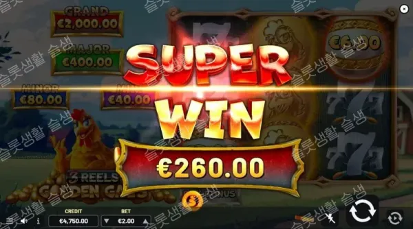 • 메이저(Major, 200x) / 그랜드(Grand, 1,000x): 기호 4개를 모으면 해당 잭팟 지급.