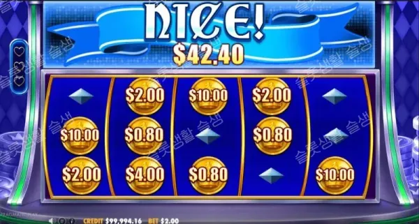 복잡한 서사나 어지러운 기능 없이 단 5개의 고정 페이라인에서 진행되는 베이스 게임은 클래식 오프라인 게임기의 향수를 불러일으킵니다. 왕관이 장식된 동전, 다이아몬드 패턴의 벽지, 파란색과 빨간색이 교차하는 선명한 보석 기호들이 카니발 음악과 어우러져 유쾌하고 직관적인 플레이 경험을 선사합니다.