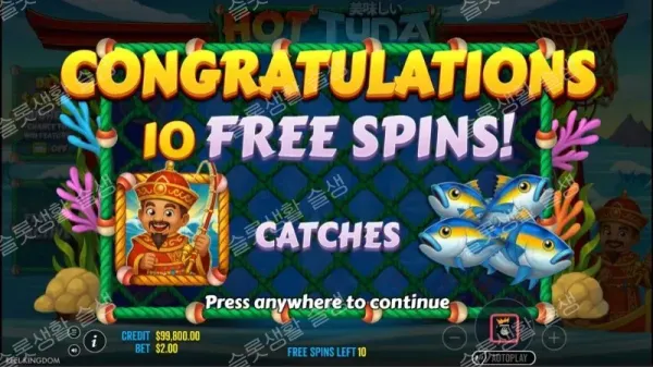 핫 튜나(Hot Tuna) 슬롯은 기존 낚시 게임들과 차별화되는 고유의 연장(Retrigger) 시스템을 갖추고 있습니다.