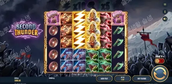 세컨드 선더(Second Thunder)는 디스토피아 전장의 서늘한 분위기와 파괴적인 와일드 기믹을 완벽하게 결합한 썬더킥의 수작입니다. 릴 위를 가득 채우는 직사각형 형태의 '와일드 필드'와 상단에서 승수를 쏟아내는 '피처 행'의 조합은 플레이어에게 높은 전략적 깊이와 기대감을 제공합니다. 94.20%라는 매우 낮은 환수율과 가혹한 고변동성은 큰 진입 장벽이지만, 일반적인 100배 구매가 아닌 75배라는 저렴한 보너스 구매 비용이 이 단점을 일정 부분 상쇄합니다. 무거운 다크 판타지 테마 속에서 12,500배의 극한 잭팟을 겨냥하는 베테랑 하드코어 헌터들에게 훌륭한 선택지가 될 것입니다.