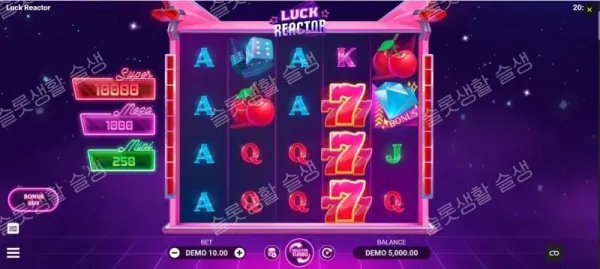 럭 리액터(Luck Reactor)는 에보플레이 특유의 매끄러운 3D 그래픽과 공상과학 테마가 클래식 카지노 요소와 절묘하게 융합된 웰메이드 슬롯입니다. 무작정 스핀만 돌리는 것이 아니라, 승수 와일드가 겹쳐지는 '프리 스핀'과 100% 현금 수집을 보장하는 '크라운 스핀' 중 하나를 플레이어가 매번 선택하게 만드는 전략적 요소가 훌륭합니다. 한 방에 인생 역전을 노리는 하이롤러보다는, 54x~90x의 저렴한 보너스 구매 기능을 적극 활용하며 뱅크롤을 오랫동안 유지하는 캐주얼 플레이어들에게 최적의 만족감을 선사할 것입니다. 화려한 네온빛 우주에서 부담 없는 낮음-중간 변동성의 재미를 만끽해 보시기 바랍니다.
