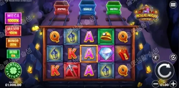 포 리프 게이밍(Four Leaf Gaming)이 골드 러시 시대의 활기찬 금광을 배경으로 한 유쾌한 슬롯, 픽액스 페이데이를 선보입니다. 5x3 그리드와 20개의 페이라인으로 시작하는 이 게임은 중앙 릴에 등장하는 세 명의 광부 캐릭터가 핵심입니다. 광부가 나타나 화면의 모든 현금 상금을 수집하는 '액션 컬렉트(Action Collect)' 기능을 기반으로 하며, 프리 스핀 진입 시 각 광부의 고유 능력에 따라 릴 확장, 배수 누적, 상금 증폭 효과가 더해져 최대 10,000배의 상금을 정조준하는 중간 변동성(Medium Volatility) 타이틀입니다.